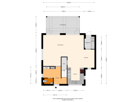 Middels de voortuin met royale oprit voor het plaatsen van 2 auto's is de entree bereikbaar. Royale hal met veel lichtinval en een aparte garderobehoek en meterkast. Luxe geheel betegelde toiletruimte met zwevend toilet en fonteintje. De hal is ruim en modern, en leidt je via een strakke glazen deur naar de royale woonkamer. Deze deur is niet alleen een stijlvolle eyecatcher, maar zorgt ook voor een prachtige lichtinval en een open, transparant gevoel – zonder in te leveren op sfeer of functionaliteit. Luxe keuken met composiet werkblad en nieuwe keukenfrontjes. De luxe keuken biedt veel werkruimte en een stijlvol ontwerp en is voorzien van de navolgende apparatuur: BORA inductiekookplaat met afzuiging, koffieapparaat, oven, vaatwasser, Quooker en koelkast. Naast de keuken ligt nog een handige bergkast.