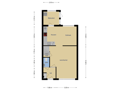 - 54 m² (10,40 meter diep en 5,20 meter breed)