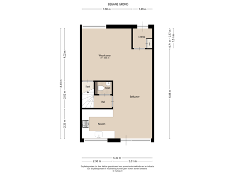 - 40 m² (8,00 meter diep en 5,00 meter breed)