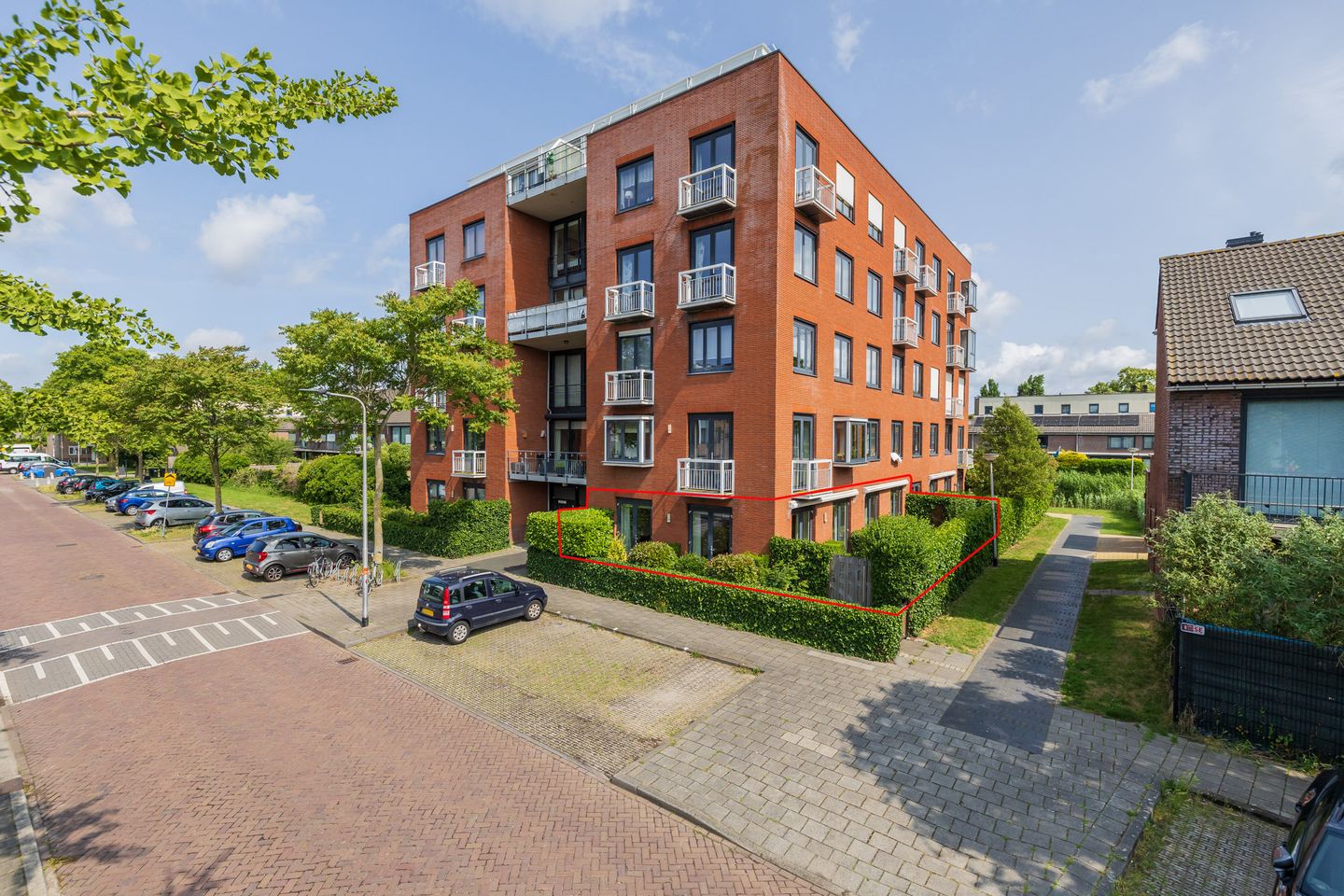 Tuin: De voortuin is direct bereikbaar vanuit de woonkamer via openslaande deuren en biedt een fijne buitenruimte aan de voorzijde van het appartement. Daarnaast beschikt het appartement over een royale en zonnige zijtuin met een eigen toegang vanaf de voorzijde van het complex. Ook vanuit de woonkamer en beide slaapkamers is de tuin via meerdere openslaande deuren toegankelijk.
