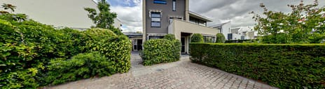 Aan de achterzijde grenst de tuin aan een waterpartij en biedt ook veel privacy. De tuin is fraai aangelegd met o.a. sierbestrating, vaste beplanting en hagen.