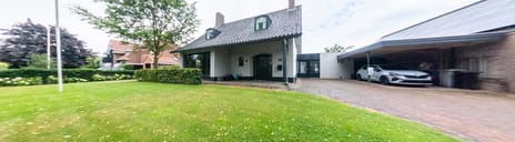 Ook de voortuin heeft een groot gazon en daarnaast een zeer riante oprit met plaats voor meerdere auto's. De oprit is voorzien van een carport. Onder de carport vind je de dubbele deur die toegang geeft tot de inpandige berging. De oprit is afsluitbaar (met afstandsbediening) met een houten hekwerk.