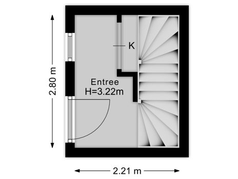Om de hoek van de Havenstraat, via de 1e Oosterstraat de eigen entree op de begane grond. Ruime hal met hoge plafonds en meterkast, trapopgang naar een overloop met raampartij en lichtkoepel. Via de glas-in-lood-deur de doorloop naar de half open, ruime keuken. De keuken bevindt zich in L-opstelling met losse compartimenten en is voorzien van een 5-pitsgaskookplaat, brede afzuigkap, vaatwasser, losse koelkast, een oven en magnetron.