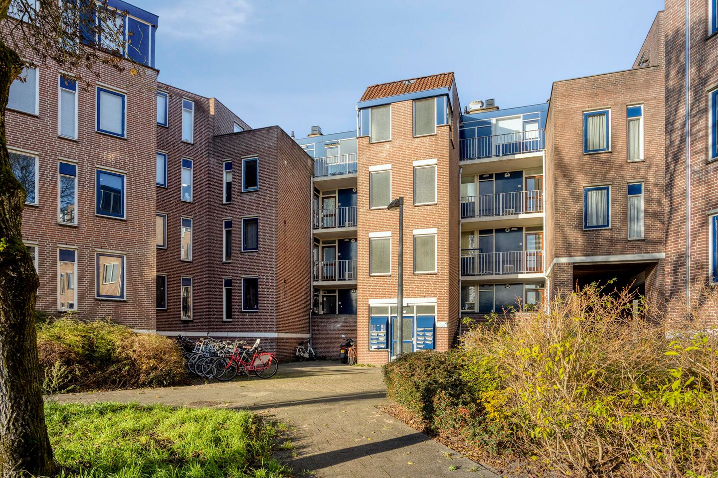 Bij aankomst in het complex merk je meteen dat het hier netjes onderhouden is. Via de centrale entree met brievenbussen en bellentableau krijg je toegang tot het trappenhuis. De bergingen in de onderbouw zijn gemakkelijk bereikbaar en bieden alle ruimte voor fietsen, gereedschap of extra opslag. Alles voelt hier overzichtelijk en verzorgd, precies zoals je het als bewoner wil.
