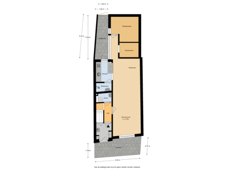 - 8 m² (1,60 meter diep en 5,30 meter breed)