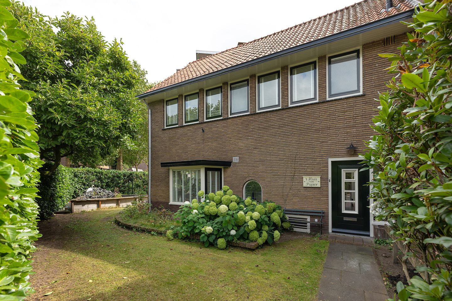 Direct tegenover één van de entrees van het Corversbos, gelegen royaal en zeer goed onderhouden hoekwoning (bouwjaar 1938) met tuin rondom, 2 royale schuren en garage.