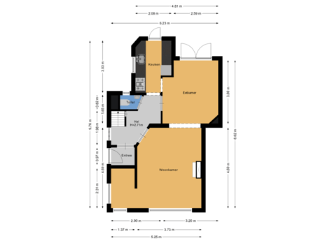 - 39 m² (8,75 meter diep en 4,50 meter breed)