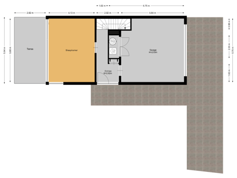- 17 m² (2,82 meter diep en 5,68 meter breed)