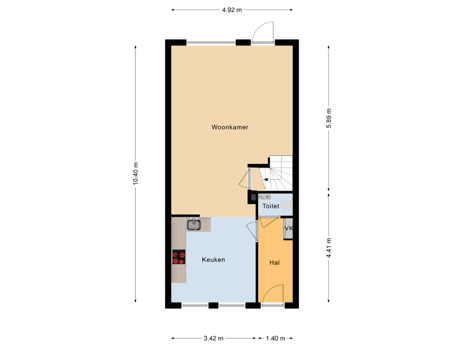 - 50 m² (10,00 meter diep en 5,00 meter breed)