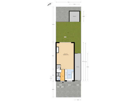 - 80 m² (10,60 meter diep en 7,50 meter breed)