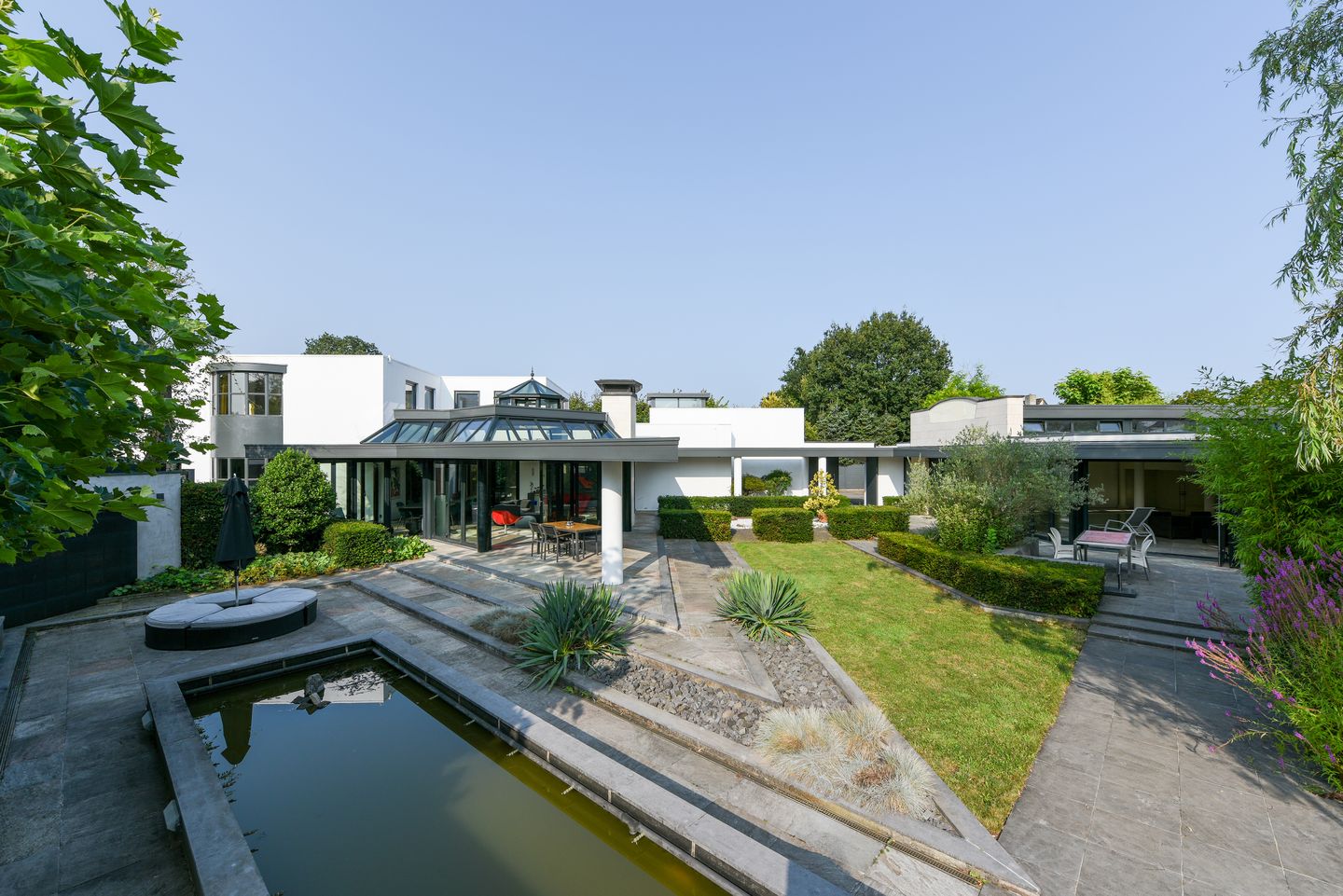 We nodigen u van harte uit om deze spectaculaire villa met eigen ogen te komen bekijken. Een bezichtiging is de enige manier om volledig te kunnen zien en begrijpen wat deze woning u te bieden heeft. Vanaf de toegangspoort aan de straatzijde is het slechts een glimp van wat er achter de gevels en bomen schuilgaat. Kom binnen, laat u verrassen en maak een ontspannende wandeling in de weelderige tuin van maar liefst ruim 3.000 m²!