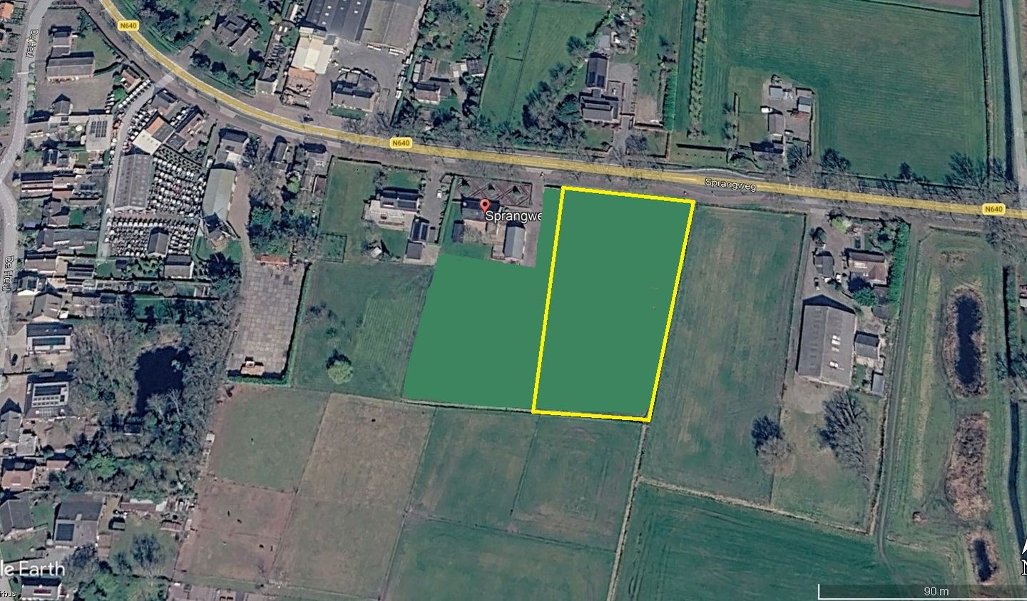 Het perceel is onlangs omgeploegd en netjes ingezaaid met gras, dat komende weken zich verder zal manifesteren.