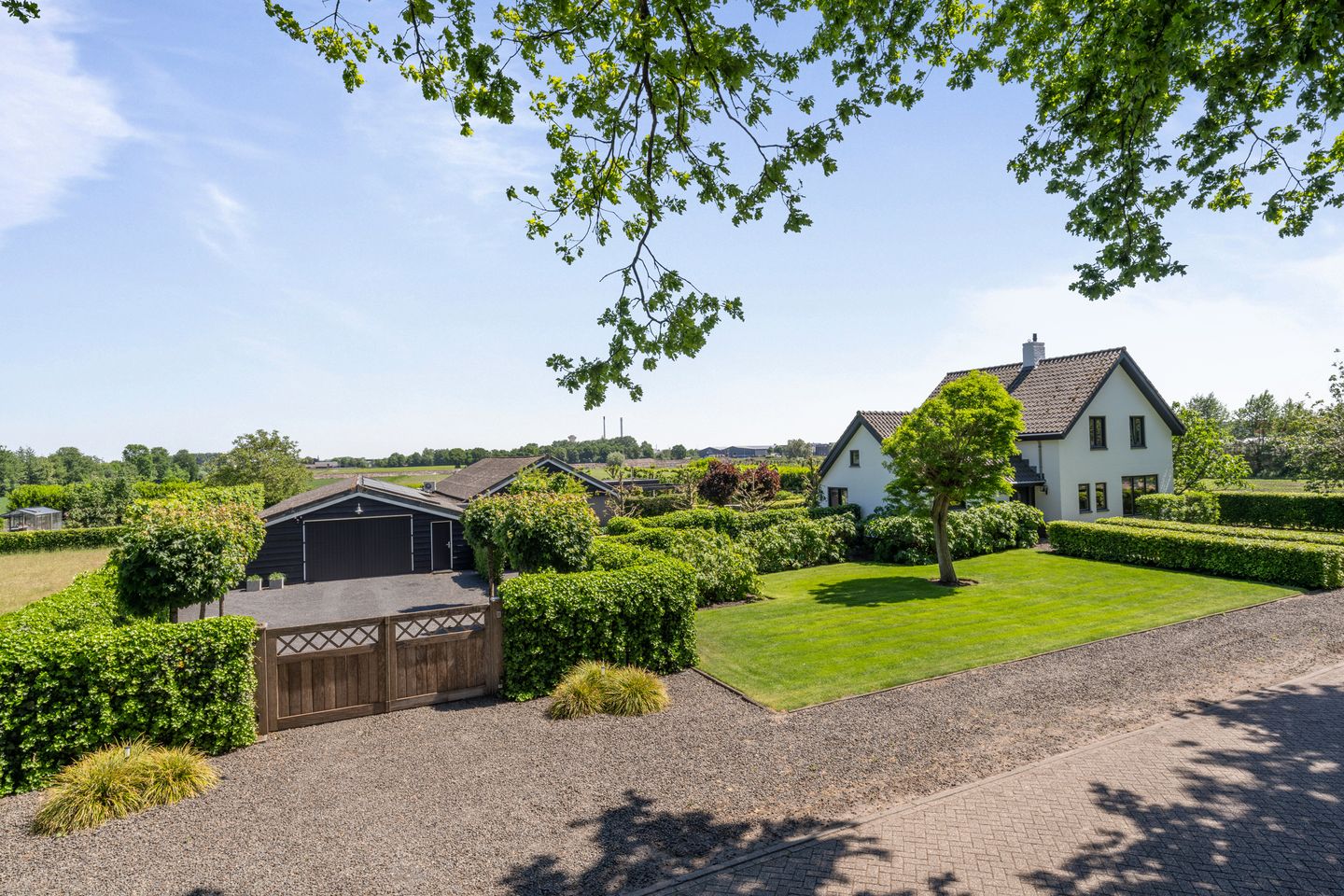 Je rijdt door de elektrische poort je eigen terrein op, de oprit biedt direct een gevoel van ruimte en privacy. Ruimte genoeg voor het parkeren van meerdere auto's. De royale garage van maar liefst 98 m2 is ideaal voor je autoverzameling, motor, hobbyruimte of opslag. Dankzij de laadpaal in de garage ben je ook voorbereid op elektrisch rijden.