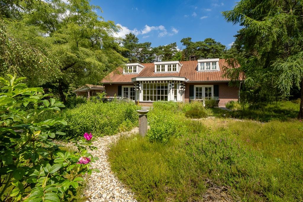Magnifiek op de Holterberg gelegen landhuis (energielabel A, inhoud 1270 m³, woonoppervlakte 288 m²) dat in een uitstekende staat van onderhoud verkeert met inpandige garage, vrijstaande berging met overkapping en omgeven door een prachtige bos- en heidetuin met zonnige terrassen op een kavel van 1.09.50 hectare!
