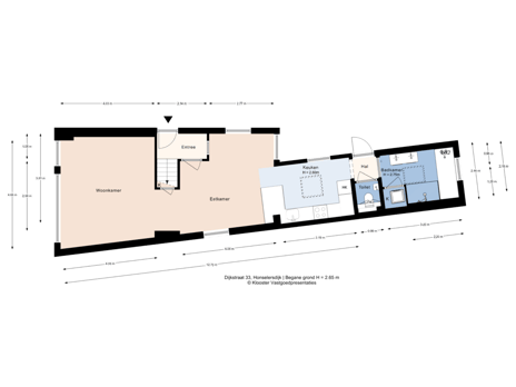 - 26 m² (11,00 meter diep en 3,50 meter breed)