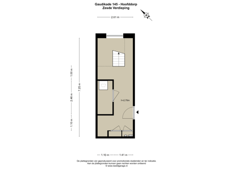 - 8 m² (1,66 meter diep en 4,91 meter breed)