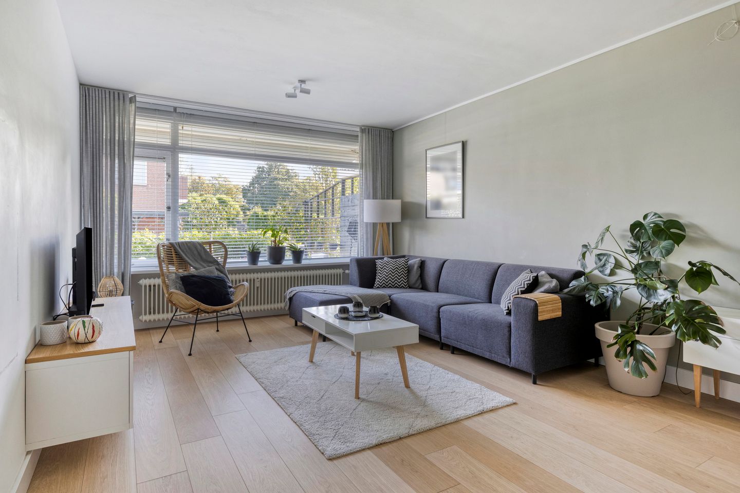 Via de beveiligde, gezamenlijke entree of via de achterzijde van de tuin bereikt u het appartement. De hal geeft toegang tot de lichte woonkamer met open keuken. De keuken is voorzien van diverse inbouwapparatuur, waaronder een vaatwasser, koelkast, oven, magnetron, inductiekookplaat, Quooker en ruime opbergmogelijkheden.