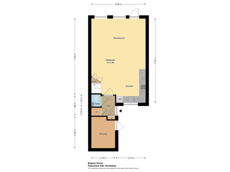 - 49 m² (9,58 meter diep en 5,14 meter breed)