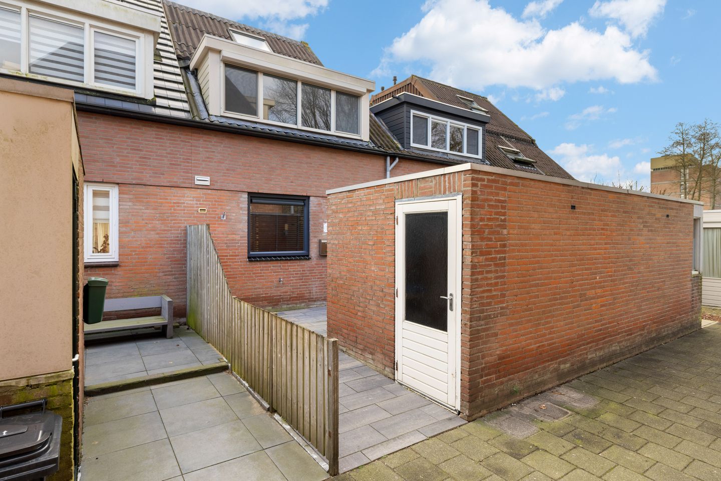 De achtertuin is heerlijk zonnig gelegen (zuidwesten) en voorzien van nette bestrating. Achter in de tuin staat een fraaie overkapping.