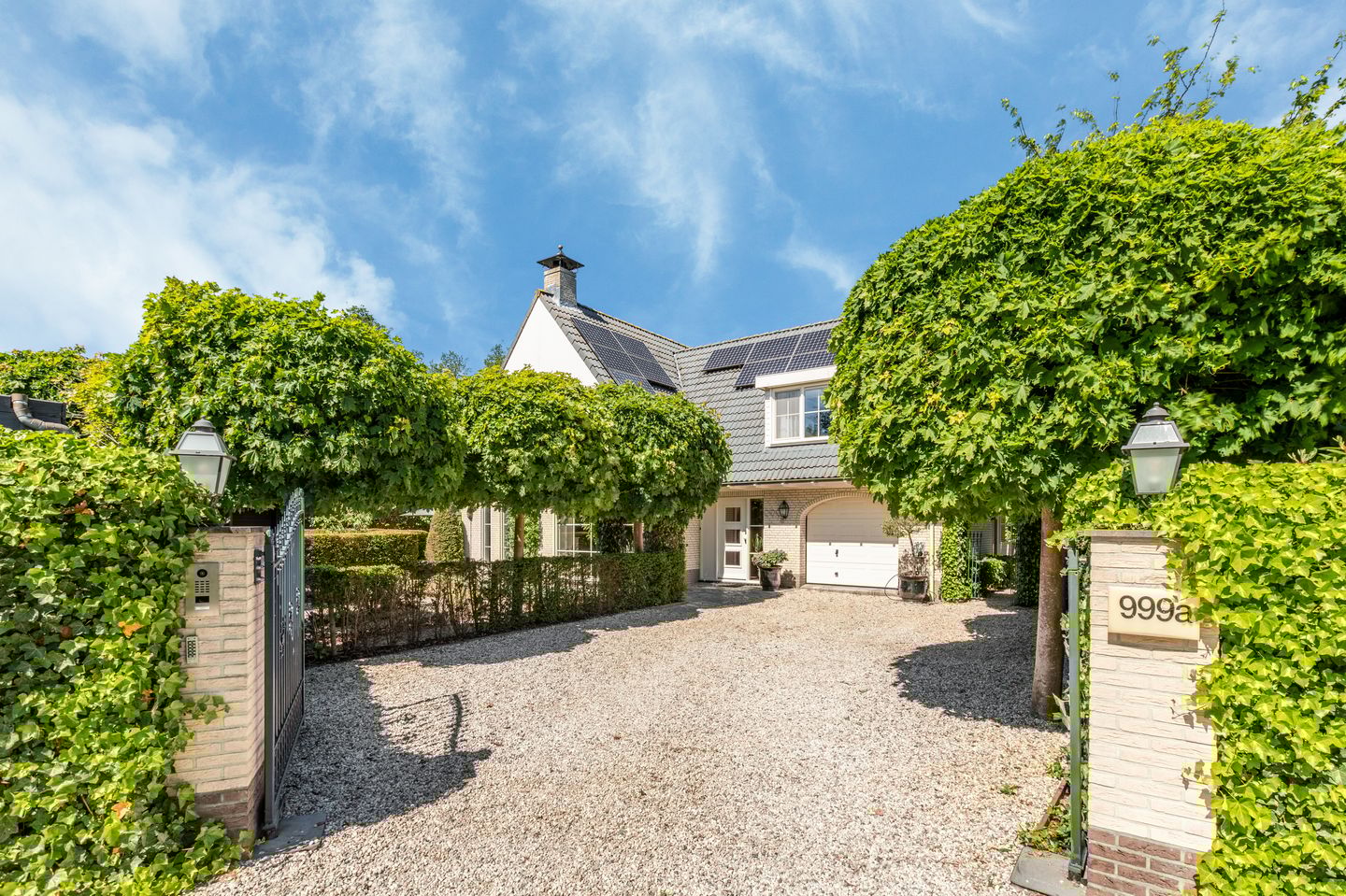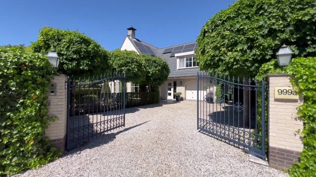 Gezamenlijke oprit naar het perceel van IJweg 999 A. Een elektrische poort met een slimme video-intercom (bedienbaar via een app) beveiligt het terrein, dat parkeerplaats biedt voor drie auto's. Hal met ingebouwde garderobe, toilet met fontein en vaste trap naar de eerste verdieping. Via de openslaande deuren bereikt u de woonkamer. De woonkamer heeft een mooie vloer met vloerverwarming, meerdere brede raampartijen en drie openslaande deuren naar de tuin. Tevens is de woonkamer voorzien van een open gashaard en op maat gemaakte kersenhouten kasten. De Miele-keuken (2009) beschikt over diverse inbouwapparatuur: een 2-pits gasfornuis met wokbrander en grillplaat, een oven, een stoomoven, magnetron, een vaatwasser, een Nespresso-automaat, een koelkast en een vriezer. Via de verbindingsgang bereikt u de garage. Hier bevinden zich de opstelplaats van de cv-ketel en een van de drie nieuw geïnstalleerde (2022) vloerverwarmingssystemen welke zijn aangelegd voor de vloeren op de begane grond, de garage en de en-suite badkamer op de eerste verdieping.