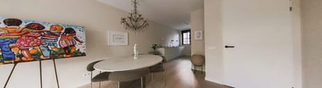 De overloop geeft toegang tot drie ruime slaapkamers, waaronder een royale hoofdslaapkamer over de volle breedte van de woning. De luxe badkamer is uitgevoerd met een inloopdouche met regendouche van Grohe, een op maat gemaakt massief houten meubel met dubbele wastafel van Villeroy & Boch, ingebouwde kranen van Grohe en een tweede toilet.