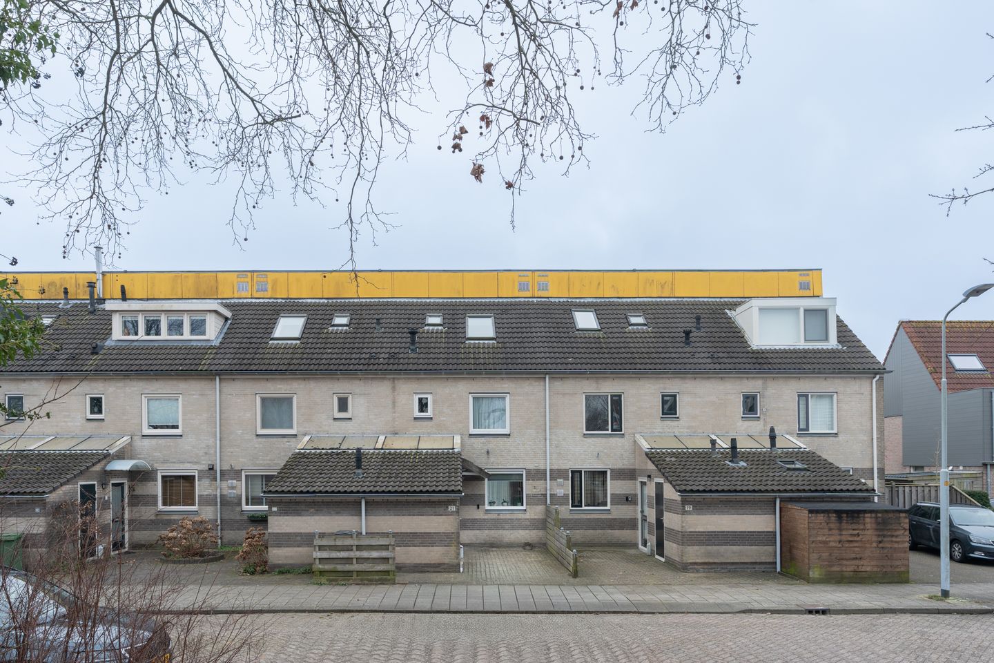 Buitenzonwering, dakraam, glasvezelkabel, mechanische ventilatie, schuifpui, en TV kabel