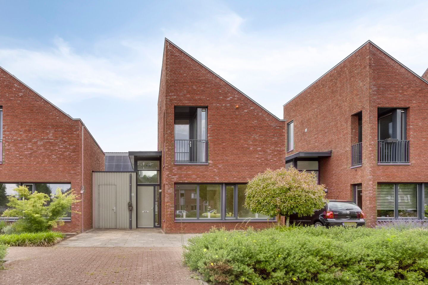 Bij de oprit parkeer je je auto en door de voordeur kom je binnen in de entree. Of je loopt, bijvoorbeeld met de fiets door de inpandige berging de woning in.
