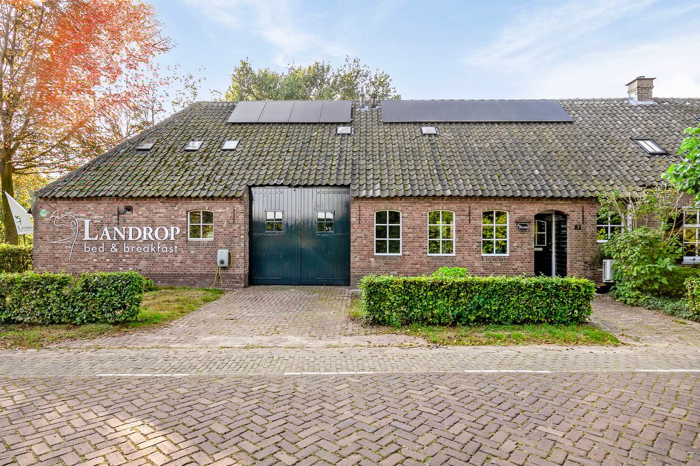 De linkerzijde van de woning is nu in gebruik als bed & breakfast / gastenverblijf en ademt net als de hoofdwoning één en al sfeer. De vele authentieke elementen van deze woonboerderij komen absoluut tot zijn recht. Er is voldoende parkeergelegenheid voor alle gasten. Je stapt binnen in de zonovergoten serre met een werkelijk prachtig, weids uitzicht over de landerijen. Deze ruimte heeft een sfeervolle openhaard en is thans in gebruik als gezamenlijke ruimte voor de B&B gasten, die hier heerlijk kunnen genieten van het ontbijt of een drankje. Aansluitend vind je een receptieruimte en de trapopgang naar de verdieping.