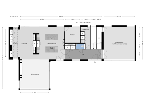 - Multifunctionele ruimte met een oppervlakte van circa 40 m², momenteel in gebruik als fitnessruimte