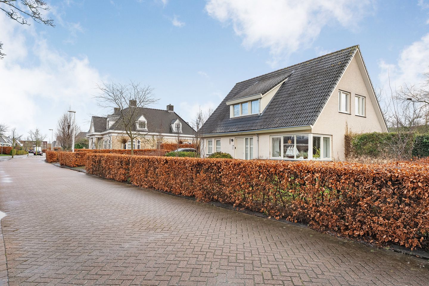 Gelegen op een prachtige locatie aan de rand van een mooie, ruim opgezette, rustige en kindvriendelijke woonomgeving (Erflanden), bevindt zich deze ruime en moderne vrijstaande woning met aangebouwde garage, ruime terrasoverkapping en vrijstaande houten schuur. Het geheel is gelegen op een heel ruim perceel van 1.088 m². De achterzijde (tuinkant) is vrij gelegen en grenst aan een watergang met daarachter blijvend openbaar groen. De tuin is mooi aangelegd, voorzien van diverse terrasmogelijkheden. Heel erg leuk is het houten vlonderterras gelegen aan de waterkant. De tuin is gelegen op het zuiden en biedt veel privacy. Dankzij de mooie bomen (notenboom, appel-, peren- en pruimenboom en een fraaie wilg) is er voldoende beschutting. Een oase voor een grote diversiteit aan vogels, de bonte specht is er kind aan huis, tevens is de ijsvogel diverse malen gesignaleerd en heel af en toe komt er ook een buizerd op bezoek.