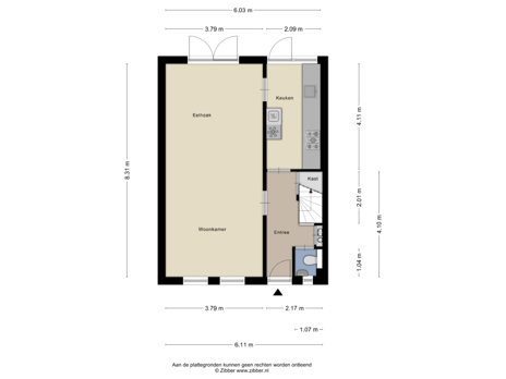 - 66 m² (11,00 meter diep en 6,00 meter breed)