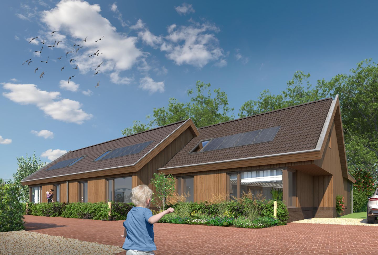 - Zadeldak bedekt met pannen