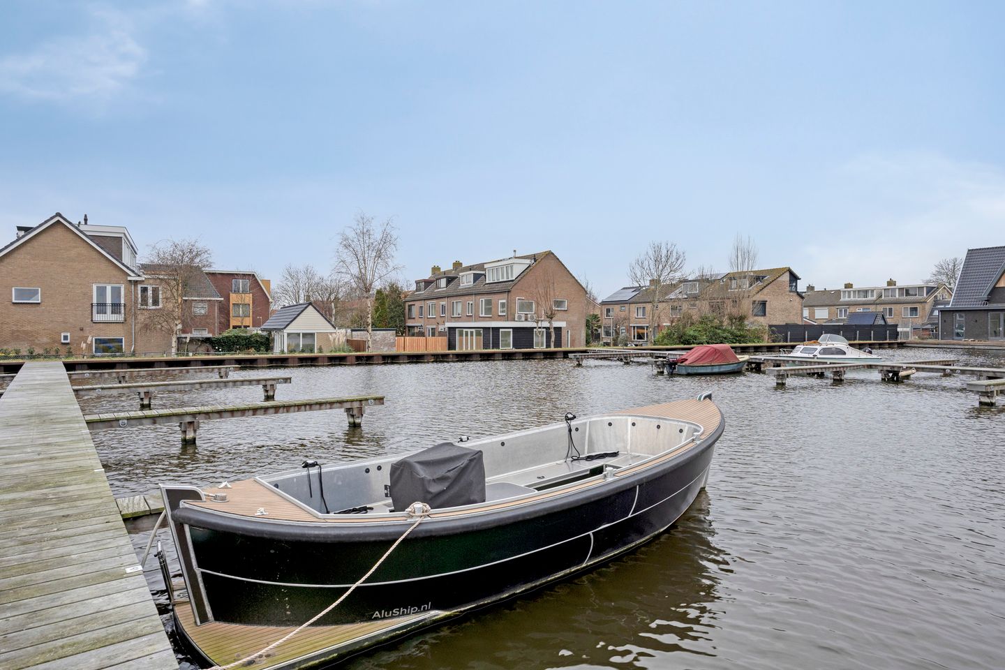 Binnen vindt u een neutrale afwerking, zodat u alle vrijheid heeft om de woning naar eigen smaak in te richten. De begane grond is voorbereid op een royale woonkeuken met kookeiland, terwijl de verdiepingen comfortabele slaapkamers en moderne sanitaire voorzieningen bieden. De ligging, aan de haven en omgeven door water en groen, geeft het geheel een extra dimensie. Dit is een woning voor wie zoekt naar een solide, eigentijdse basis op een plek waar rust en levendigheid elkaar afwisselen.