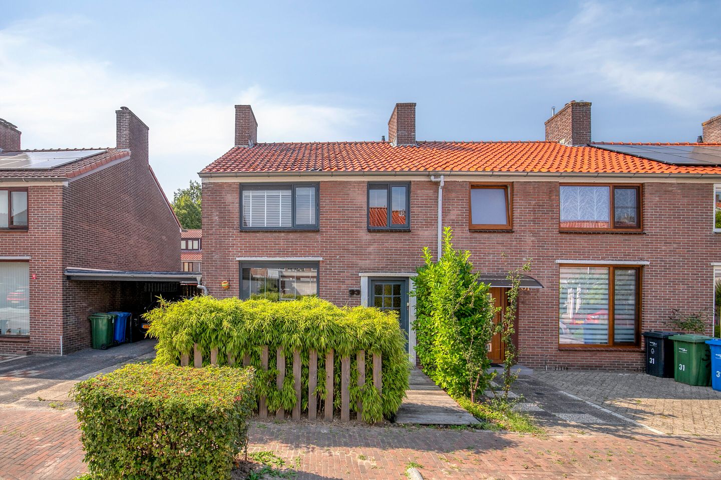 De zonnige achtertuin op het westen is verzorgd aangelegd met bestrating, borders, elektrisch zonnescherm en sfeervolle tuinverlichting. Achterin de tuin is een gezellige overkapping waar u heerlijk kunt zitten voor een een drankje. Naast het huis bevindt zich een grote gedeelde carport (dak EPDM vervangen in 2024), ideaal voor het droog stallen van fietsen of extra opslag. De grote berging van ca. 3 x 4 meter is voorzien van elektra.