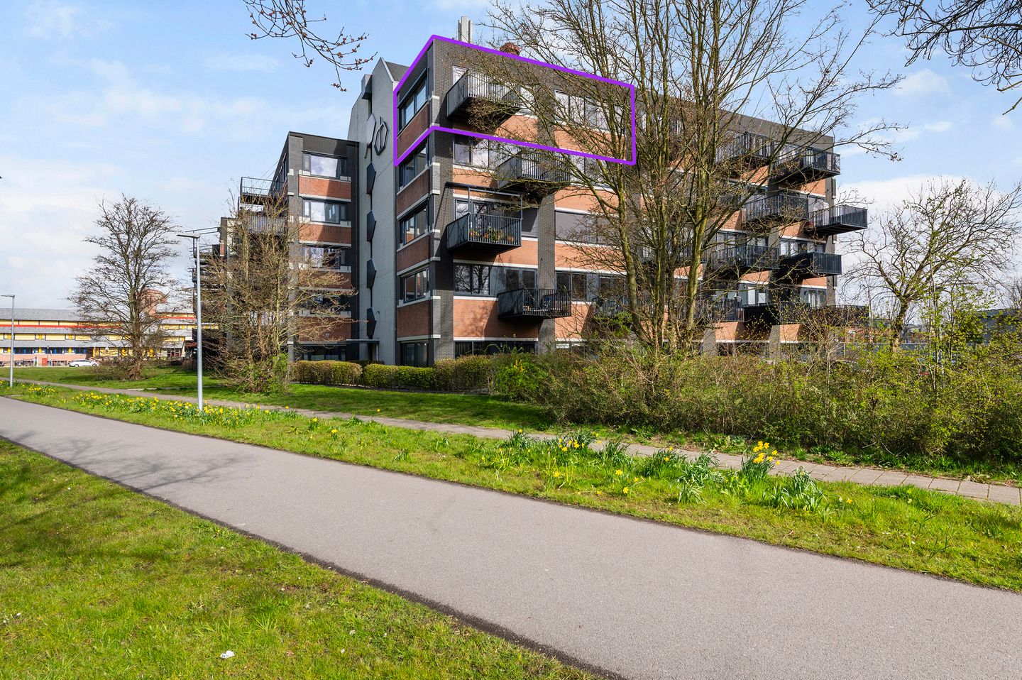Blikvangergelijkvloers wonen, bovenste verdieping op de hoek, 3 (slaap) kamers