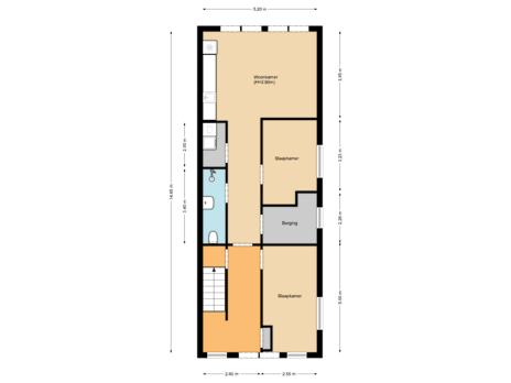 - 50 m² (9,00 meter diep en 5,50 meter breed)