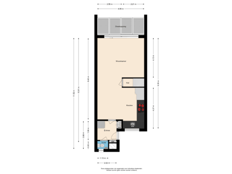 - 53 m² (10,30 meter diep en 5,10 meter breed)