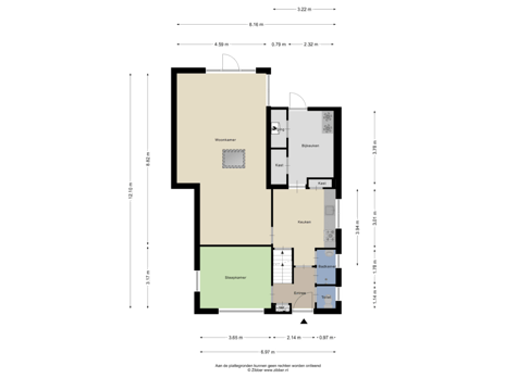 - 88 m² (8,00 meter diep en 11,00 meter breed)