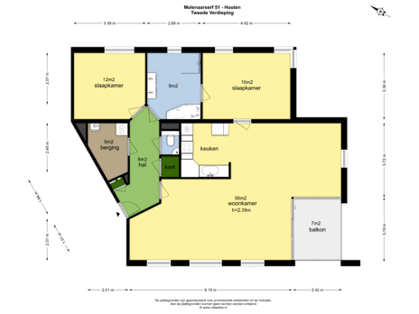 Via de lift of het verzorgde trappenhuis bereikt u de tweede verdieping. Bij binnenkomst voelt u zich direct thuis. De ruime hal geeft toegang tot de diverse vertrekken, waaronder de prachtige woonkamer met grote raampartijen en vrij uitzicht op de groenvoorzieningen. Vanuit de woonkamer bereikt u het ruime balkon op het zuidwesten. Zowel de woonkamer als het balkon zijn voorzien van elektrische screens.