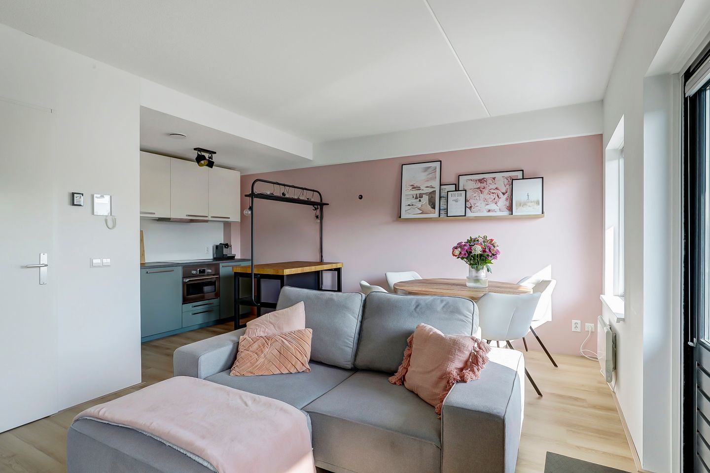 De woonkamer van ca. 18 m² is licht en praktisch ingedeeld, met ruimte voor een fijne zithoek én eettafel. De open keuken is compleet uitgerust: inductiekookplaat, afzuigkap, combi-oven, koel-vriescombi, vaatwasser en veel opbergruimte.