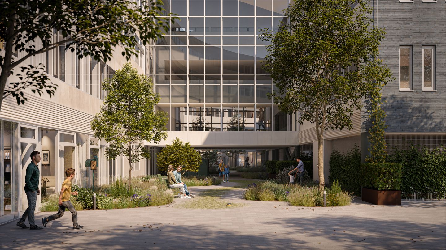 De volgende functies zullen terugkomen in de gemeenschappelijke ruimten: woonkamer, werkplekken, wasruimten en een groot, gecombineerd dak-/tuinterras.