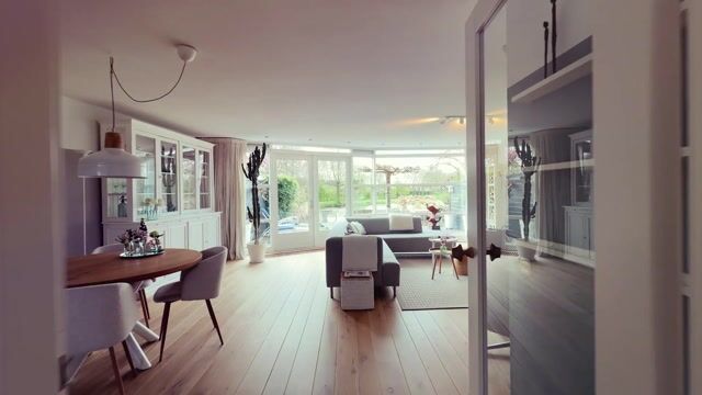 Eenmaal binnen word je meteen gegrepen door de ruimte én het uitzicht. De woonkamer is echt een plek waar je wil zijn: licht, breed en met een fantastisch zicht op het water en groen. De tuin voelt heerlijk vrij, waardoor binnen en buiten moeiteloos in elkaar overlopen.