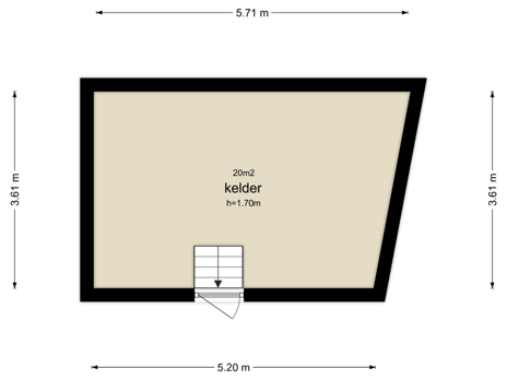 Verrassend grote droge grote opbergruimte (circa 20 m2) met een stahoogte van 1.70m.