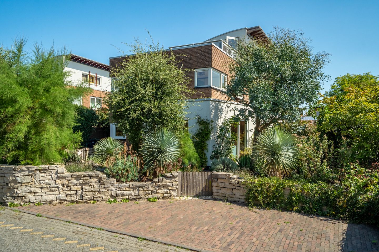 Aan de voorzijde lijkt het een vrijstaand woonhuis want aan alle kanten zijn er ramen. Je hebt volop licht in de grote woonkeuken en in de ruime woonkamer en er is een fijne lichte werkkamer op de begane grond. Wat ook zo fijn is, er is een grote inpandig bereikbare garage en er is mogelijkheid om te parkeren op eigen terrein.