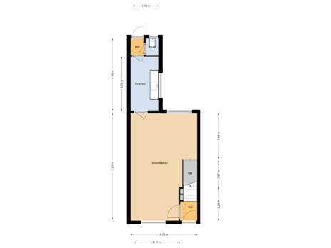 - 171 m² (38,00 meter diep en 4,50 meter breed)