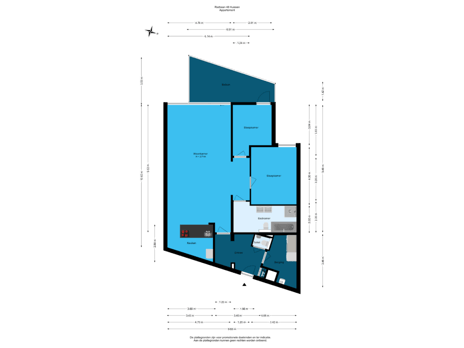 - 16 m² (2,48 meter diep en 6,51 meter breed)