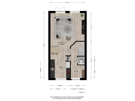- 47 m² (8,40 meter diep en 5,60 meter breed)