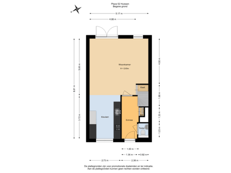 - 69 m² (12,89 meter diep en 5,39 meter breed)