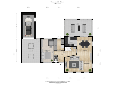 - 263 m² (15,00 meter diep en 17,50 meter breed)