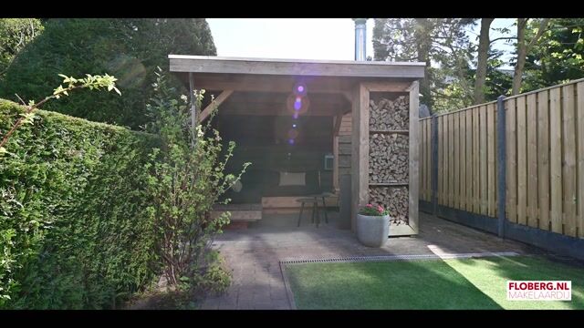Zonnige achtertuin gelegen op het zuidoosten met goede privacy en sfeervolle veranda met houtkachel.
